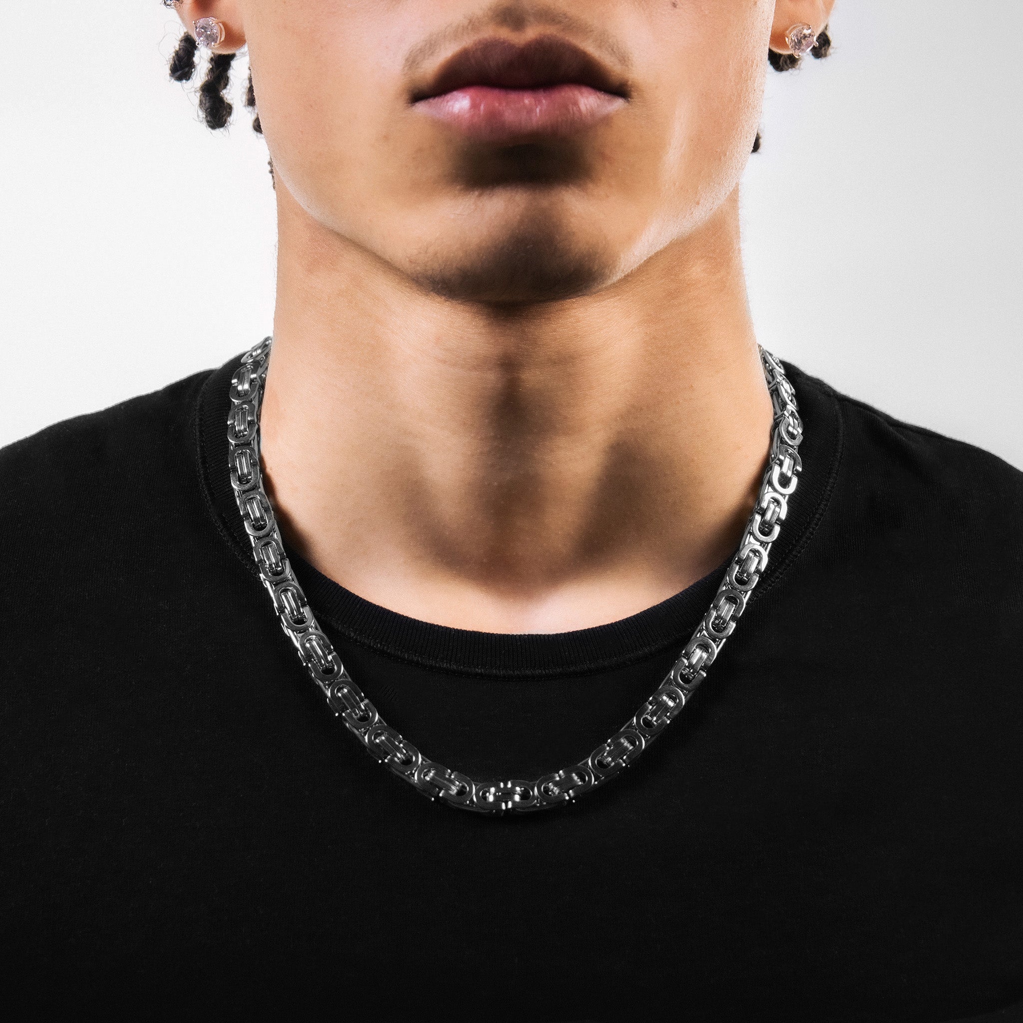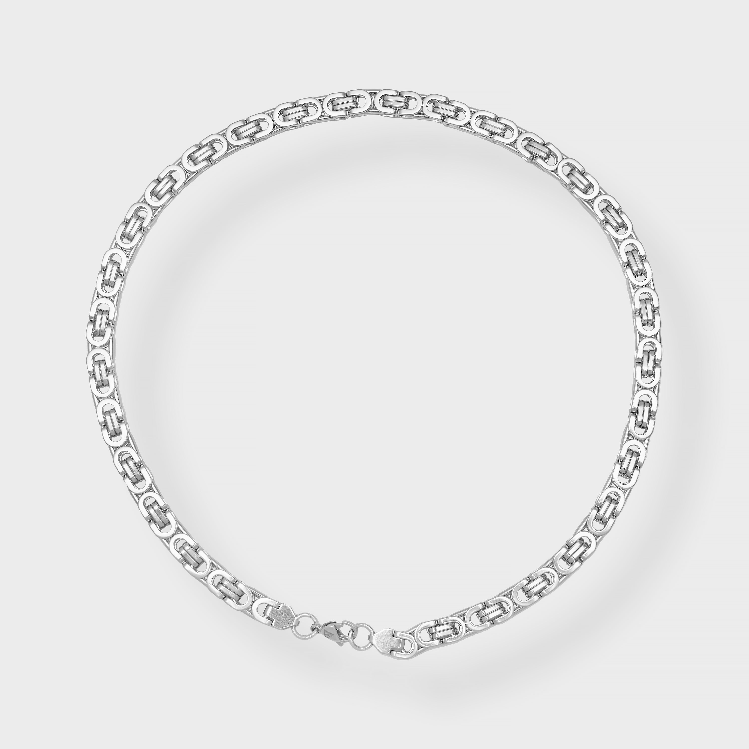 A sleek take on the classic King Chain. Featuring a flat, polished design that sits smooth on the skin while keeping a bold, heavyweight look. Perfect for everyday wear. Made from durable steel, water safe and build to last.