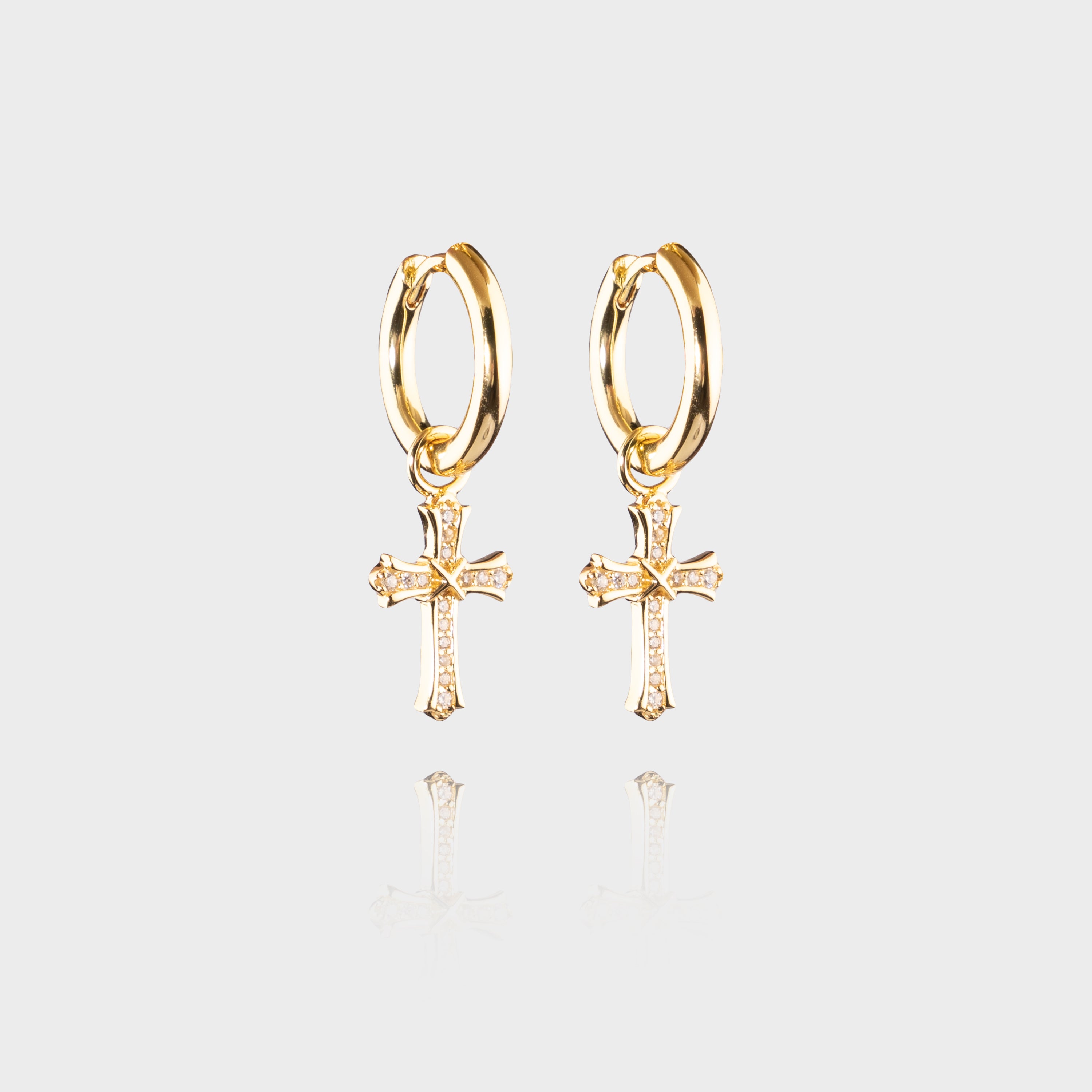 ICED CROSS BOLD HOOP EARRINGS - GOLD