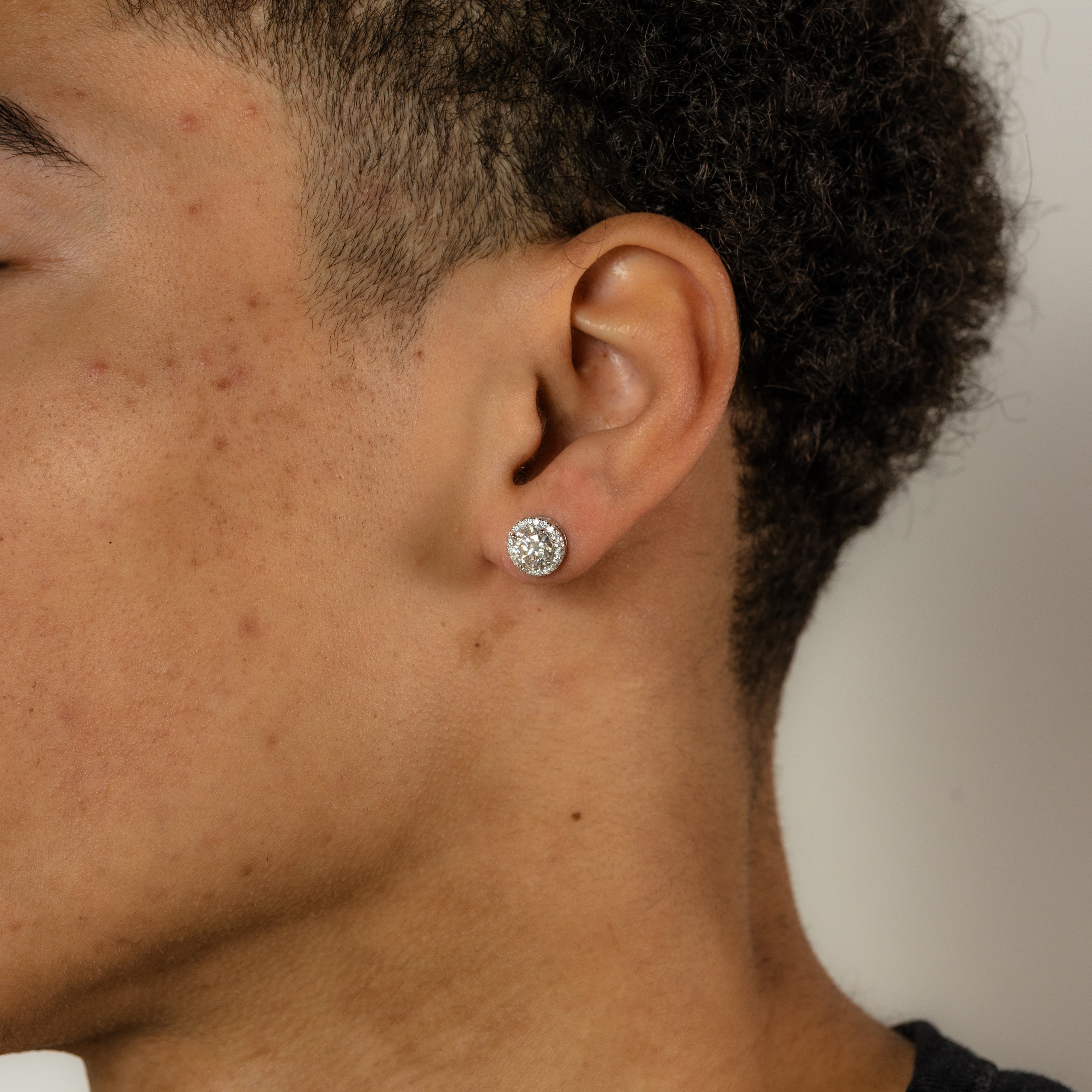 YCIENO 7.5mm Halo Studs are built around a precise halo setting. Set entirely with moissanite stones, including a round center framed by smaller moissanites for a sharp clean look. All stones pass standard diamond testers and are made for everyday wear.
