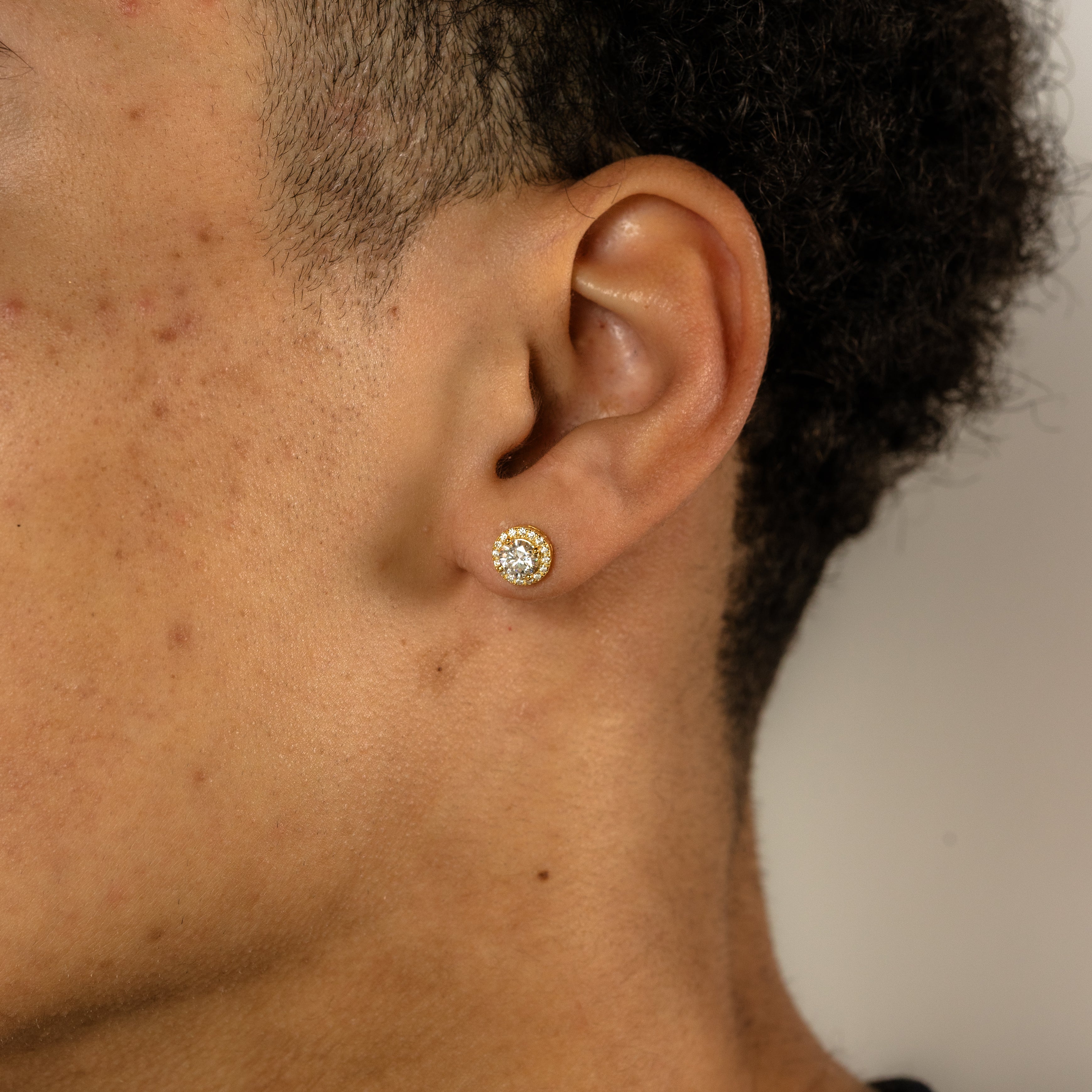 YCIENO 7.5mm Halo Studs are built around a precise halo setting. Set entirely with moissanite stones, including a round center framed by smaller moissanites for a sharp clean look. All stones pass standard diamond testers and are made for everyday wear.
