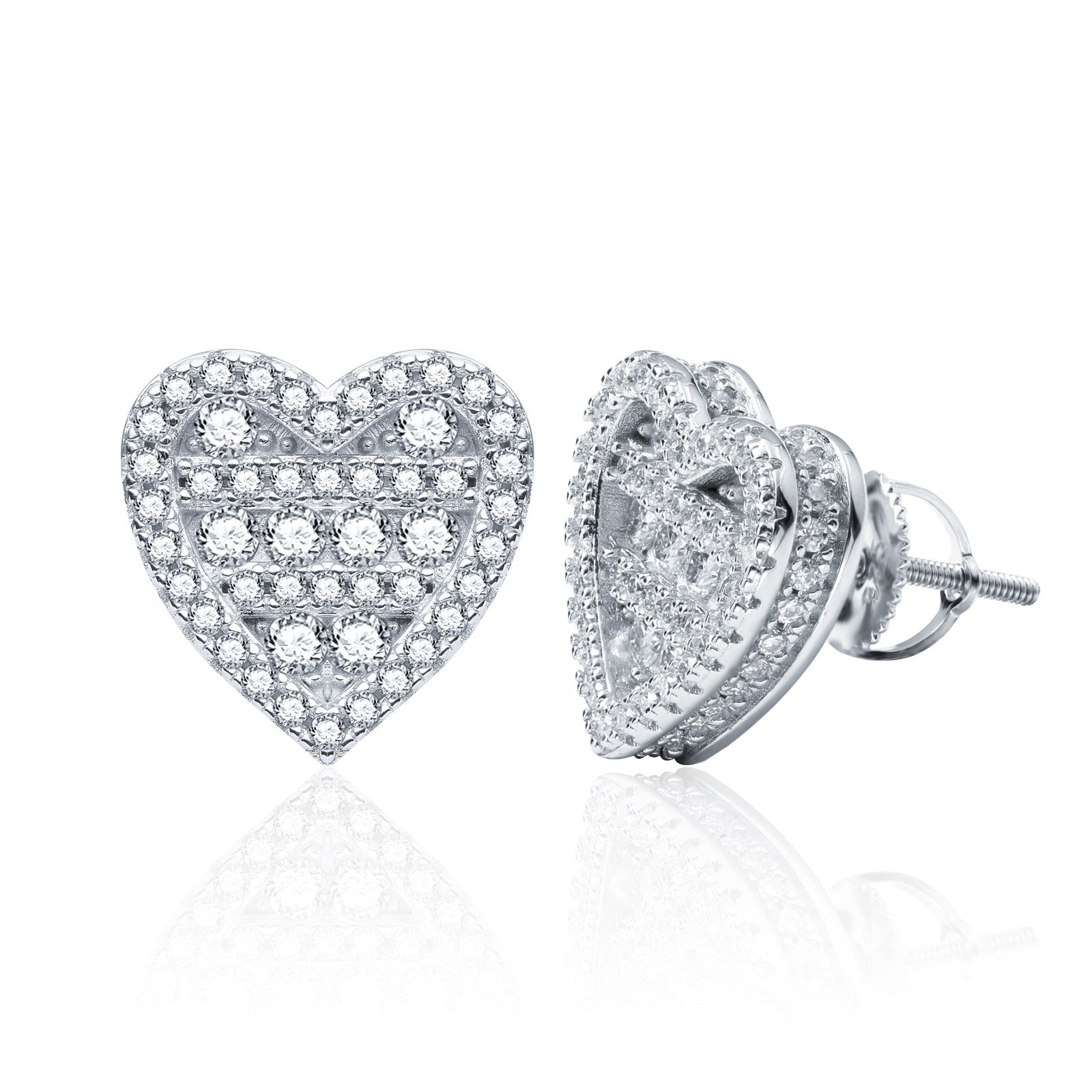 YCIENO Layered Heart Studs. S925 Silver studs with a layered heart design, filly set with CZ's. Sold as a pair.