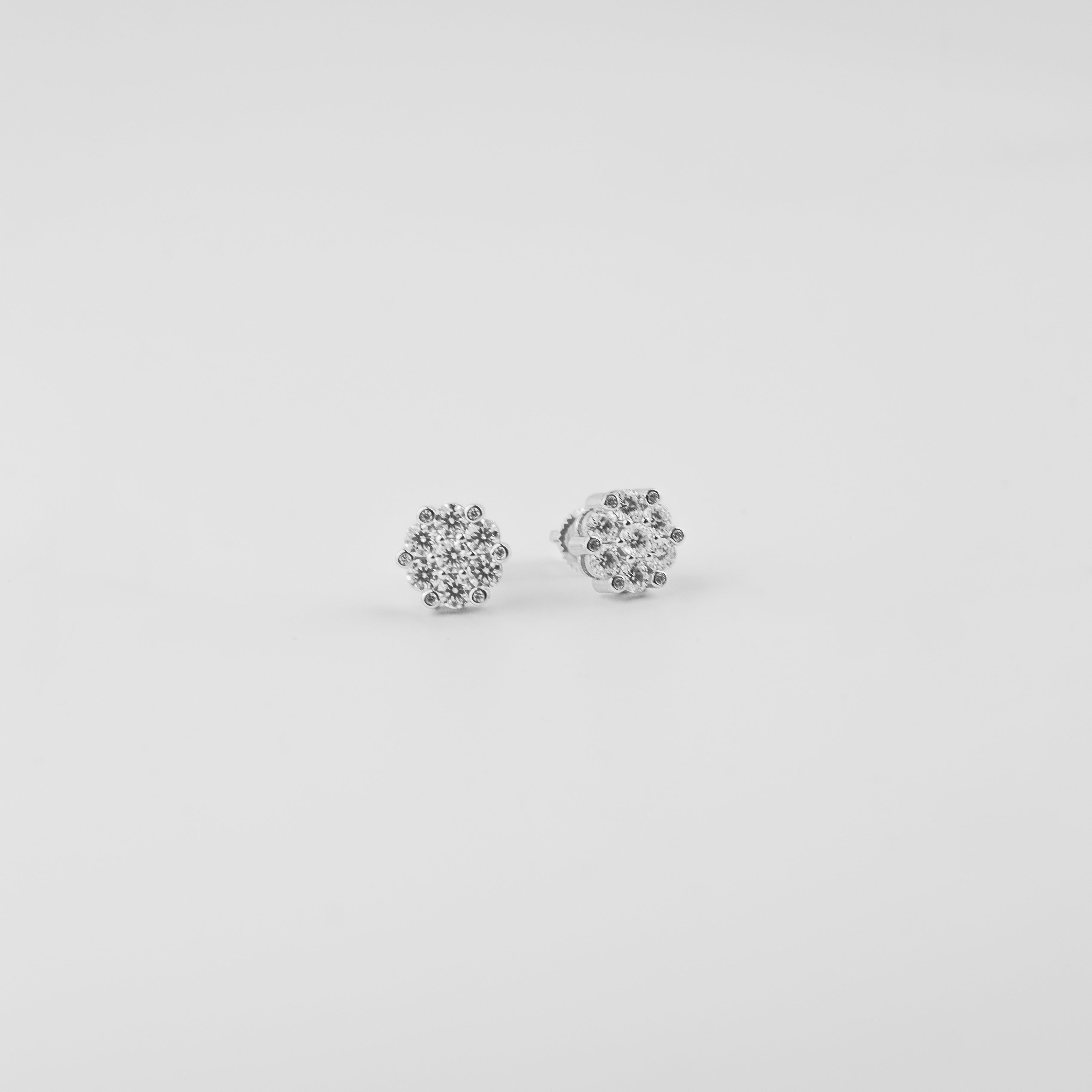 YCIENO Floral Studs. Crafted in S925 Silver. Set with moissanite stones known for strong clarity and brilliance, passing standard diamond testers. Clean design made for everyday wear. Sold as a pair.