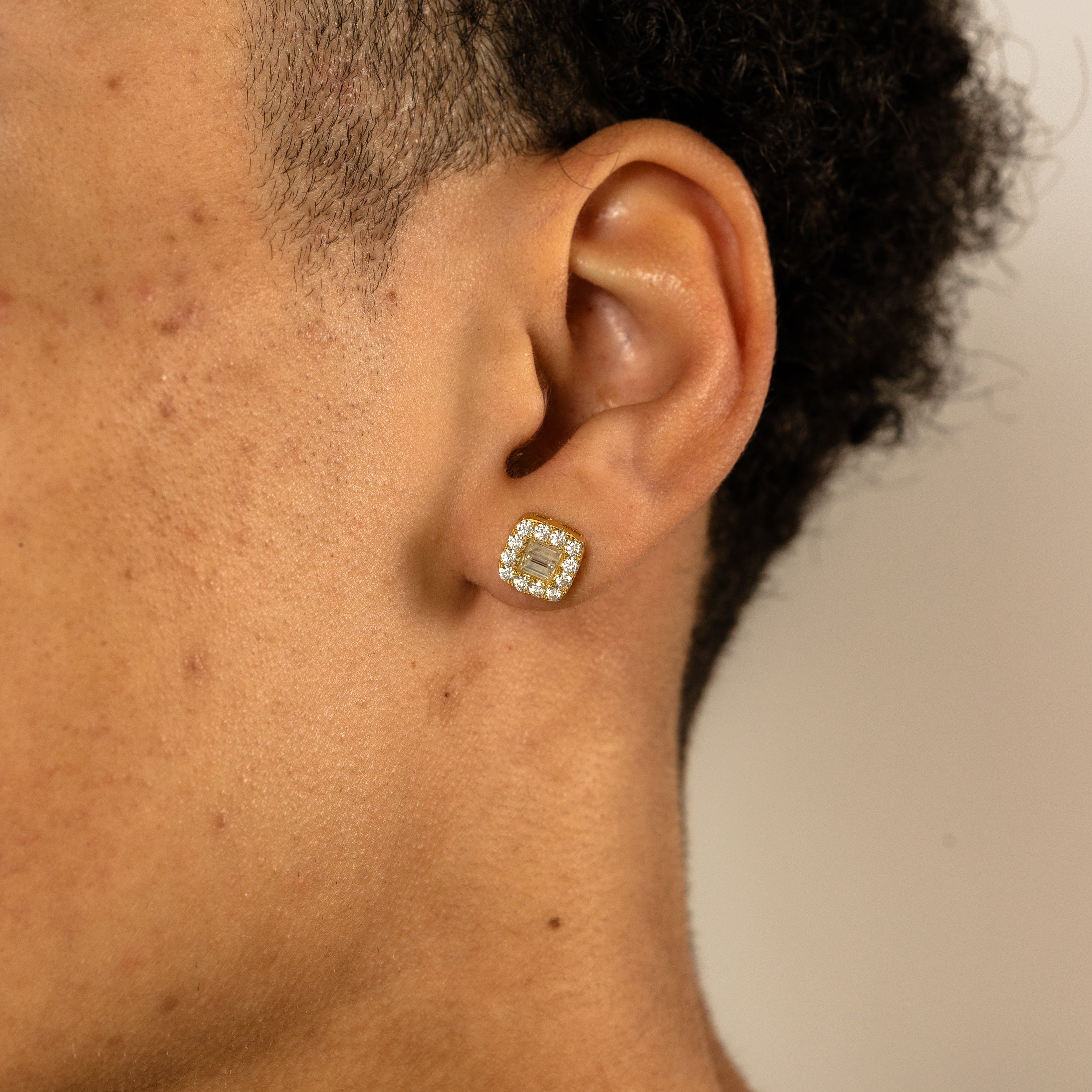 YCIENO Square Cut Studs. Gold-finished S925 silver with a square-cut design, set with moissanite stones for clear shine, passing standard diamonds testers. Solid Presence. Sold as a pair.